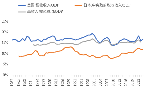 从税收收入占比看,高收入国家保持总体平稳。民选国家为了争取选民选票,倾向于给居民减税;发达国家为了增强竞争优势或接受大企业游说,倾向于降低企业所得税率。